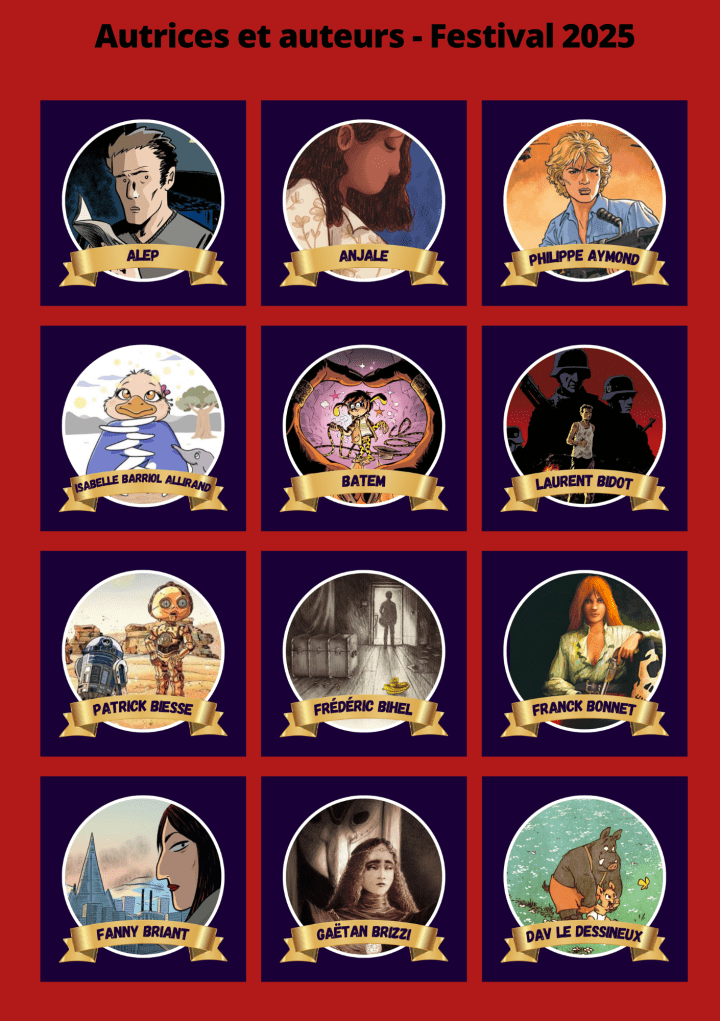 L‘édition 2025 sur le site est susceptible d’être modifiée (désistement…), pour consulter les auteurs confirmés à ce jour, notez que la liste est également consultable sur Opale BD